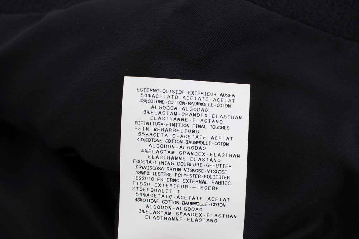 Step into style with this stunning black cotton stretch blazer jacket from EXTE! Crafted in Italy from luxurious materials (54% acetate, 43% cotton, 3% elastane), this gorgeous, brand new-with-tags jacket offers a perfect blend of comfort and sophistication. The flattering fit, chic gold studded detailing, and iconic EXTE logo make it a timeless addition to any wardrobe. Elevate your look effortlessly – order your authentic EXTE blazer today!