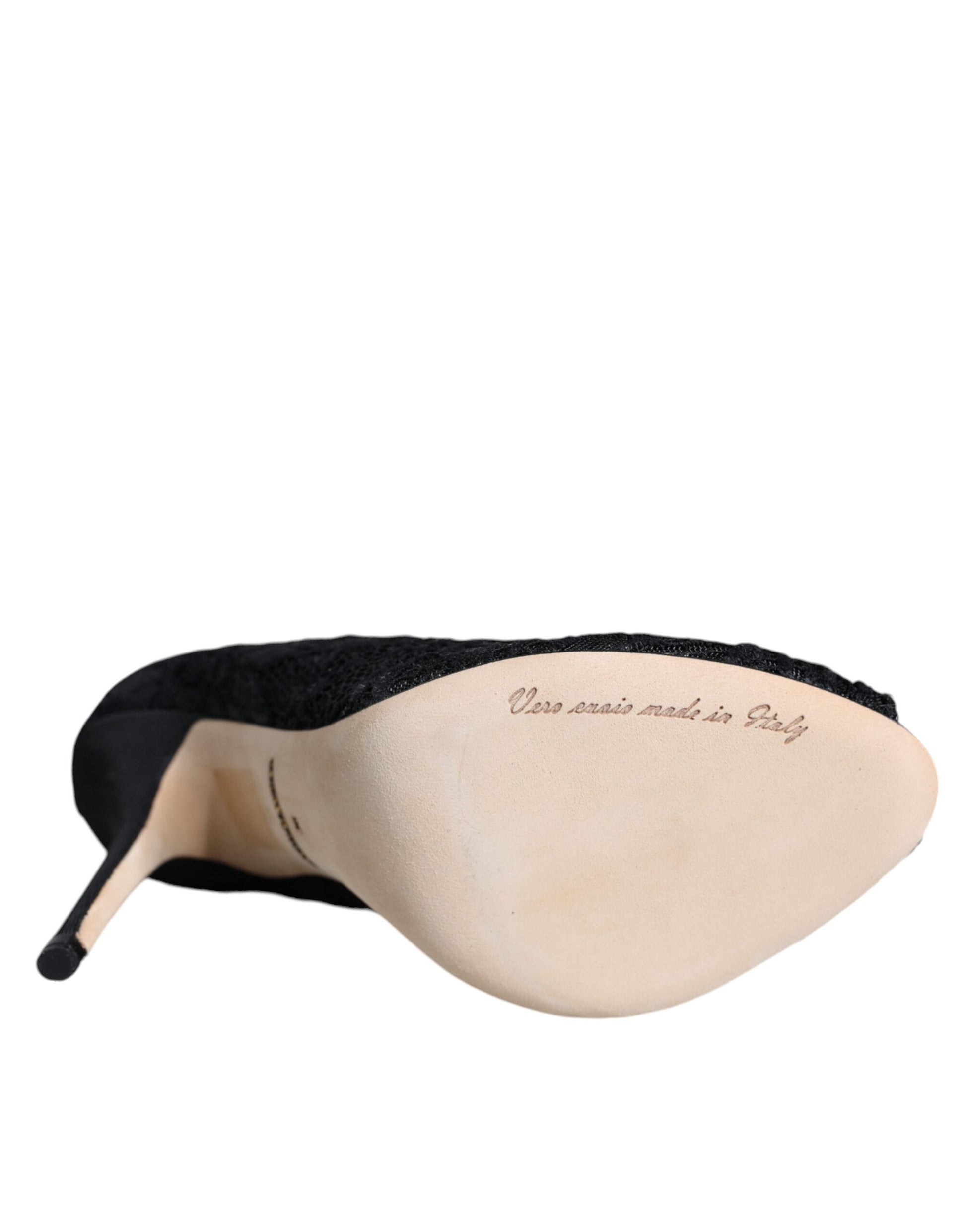 Step into luxury with these Dolce & Gabbana Black Lace Stretch Heels! These brand-new, authentic mid-calf boot shoes are designed to elevate your style. Crafted in Italy with premium materials, including a sleek black stretch knit and a leather sole, these boots offer a perfect fit and unparalleled comfort. The intricate lace detailing adds a touch of glamour. Shop now and add a touch of designer elegance to your wardrobe.