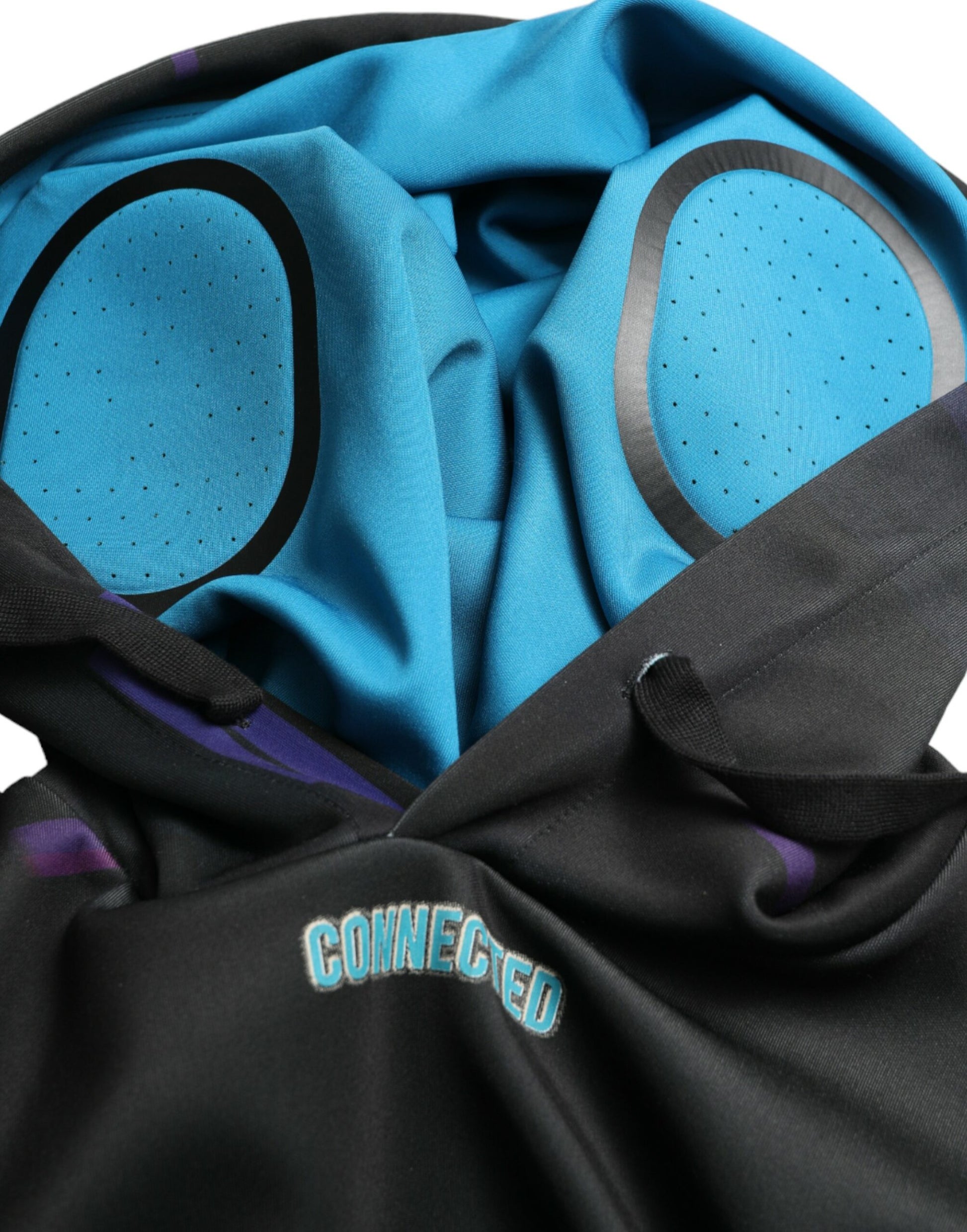 Elevate your athleisure game with this stunning Dolce & Gabbana Black Logo Print Hooded Sweatshirt Sweater. Crafted in Italy from a luxuriously soft polyester-elastane blend, this cozy pullover sweatshirt boasts a sleek ribbed trim and iconic logo print that exudes designer sophistication. The hooded design adds a sporty-chic vibe, while the stretchy fabric ensures a flattering, comfortable fit. Whether you're running errands or lounging at home, this versatile Dolce & Gabbana sweater is the ultimate in luxe casual style. Snag this 100% authentic designer piece from our online outlet at an unbeatable price.