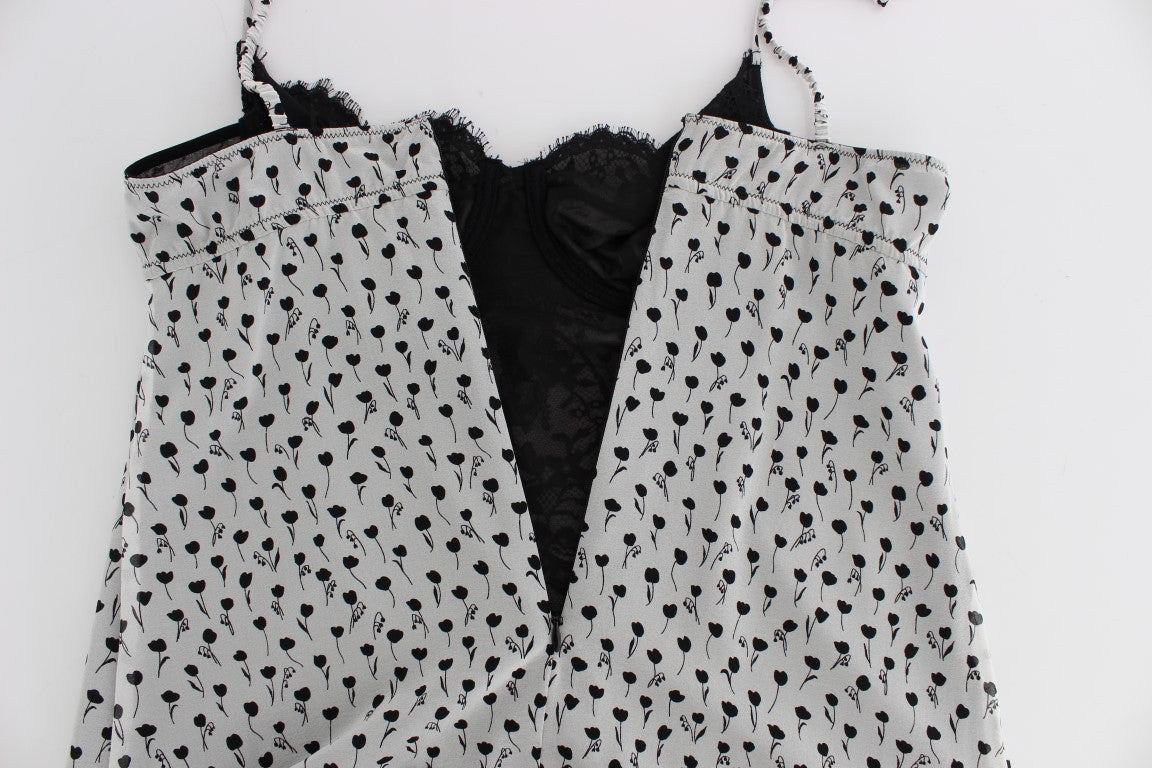 Indulge in luxury with this Dolce & Gabbana black and white floral print silk lace babydoll chemise. This gorgeous, authentic Italian-made lingerie features a flattering fit, adjustable straps, convenient back zipper, and signature logo details. Made from a luxurious blend of silk, cotton, elastane, and polyamide, this exquisite piece is both comfortable and captivating – perfect for adding a touch of elegance to your wardrobe.