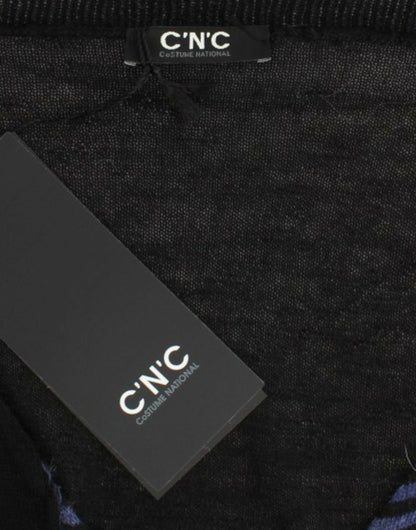 Costume National Women's Black striped V-neck sweater