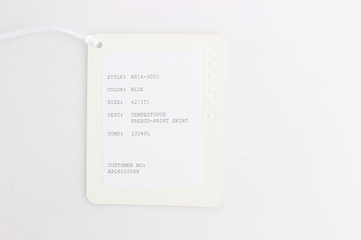 Turn heads in our stunning Koonhor Fresco-Print Pencil Skirt! This knee-length, designer skirt boasts a vibrant blue and white print, impeccable Italian craftsmanship, and flattering peplum detail. Made from luxurious polyester with a comfortable acetate and polyester lining, this 100% authentic Koonhor skirt is a true work of art—perfect for adding a touch of sophisticated style to your wardrobe. The convenient back zipper and subtle logo details complete this must-have piece. Shop now and experience the Koonhor difference!