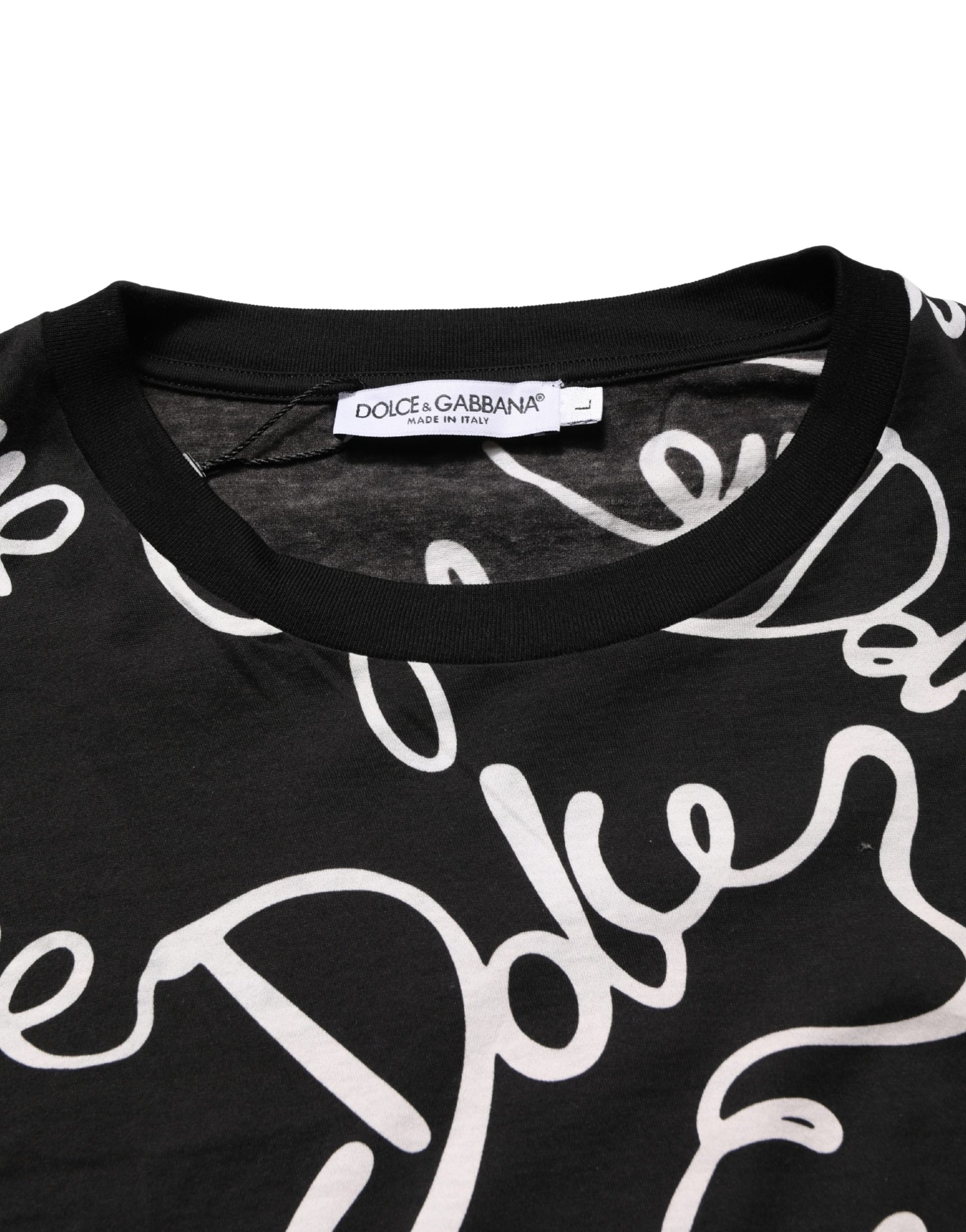 Dolce & Gabbana Black Script Logo Print Men Crew Neck T-shirt