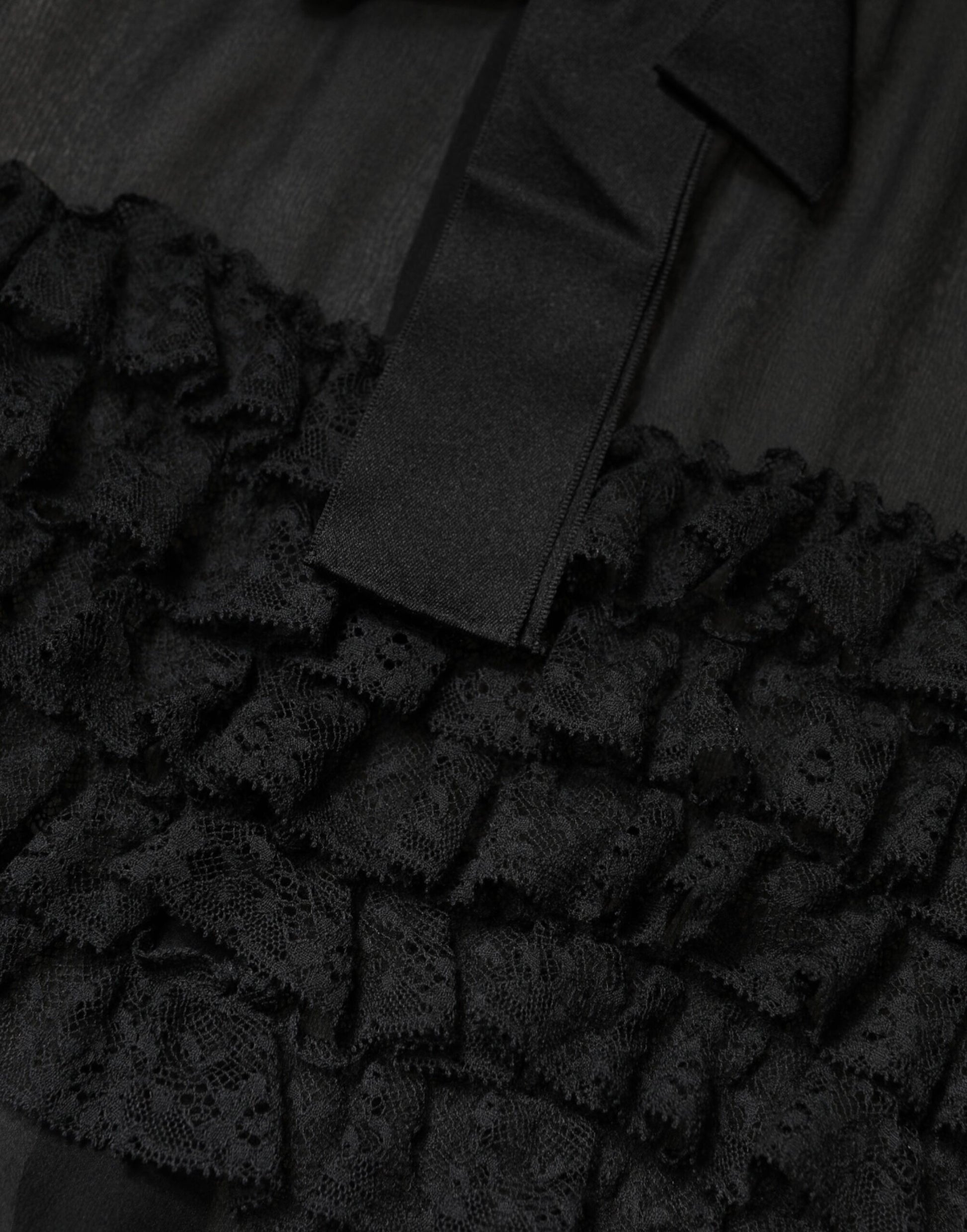 Dolce & Gabbana Black Silk Sheer Ruffle Tie-Neck Blouse Top