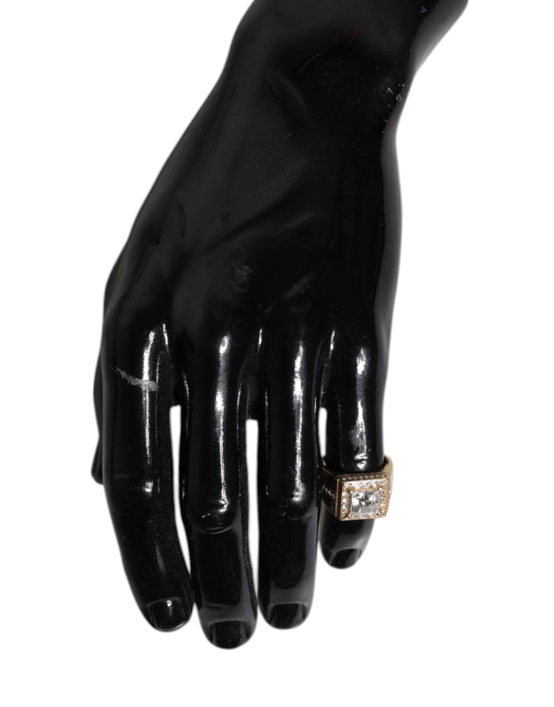 Adorn your fingers with the radiant allure of this brand new, 100% authentic Dolce & Gabbana gold-tone ring. Crafted from sterling silver 925 and sparkling crystals, this ring is a testament to Italian craftsmanship and timeless design. The clear crystals catch the light with every movement, making this ring the perfect statement piece for any occasion. Elevate your style with this exquisite Dolce & Gabbana ring, a true symbol of luxury and sophistication.