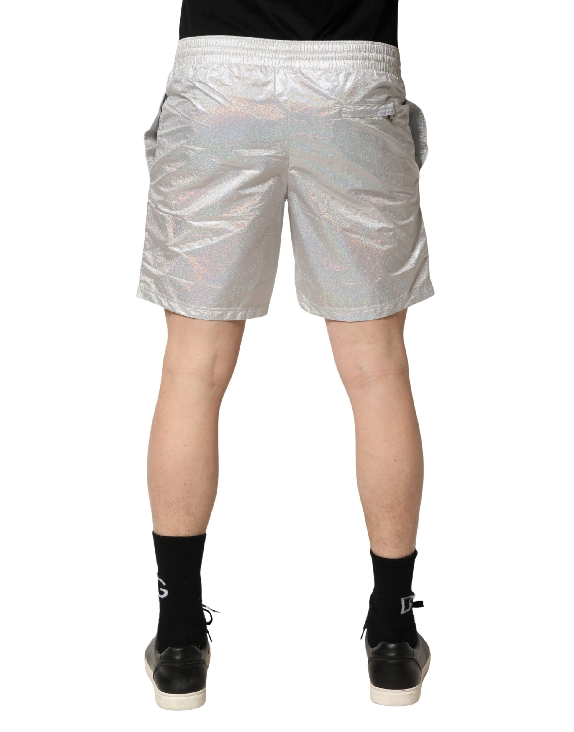 Dolce & Gabbana Silver Polyester Drawstring Men Shorts Swimwear