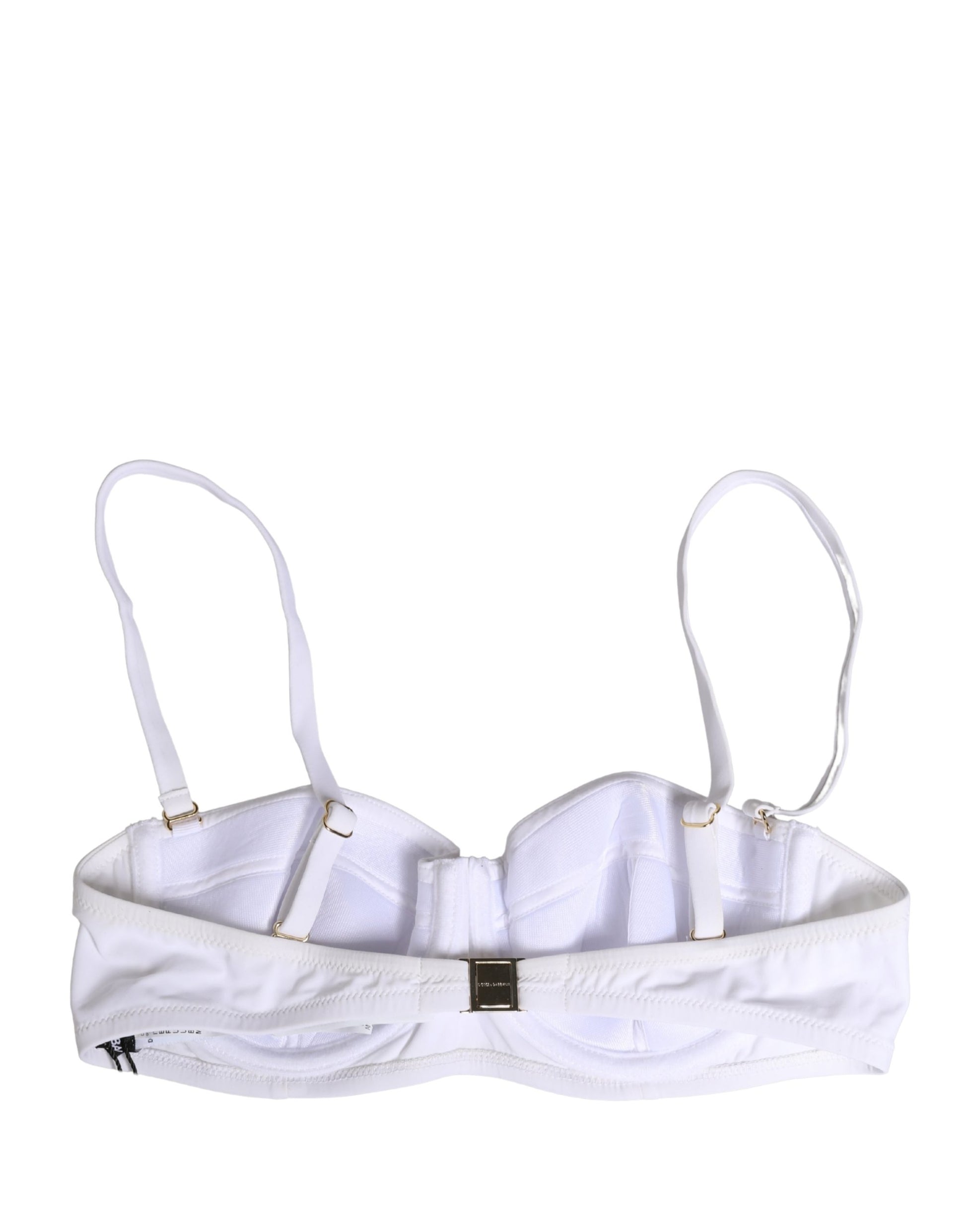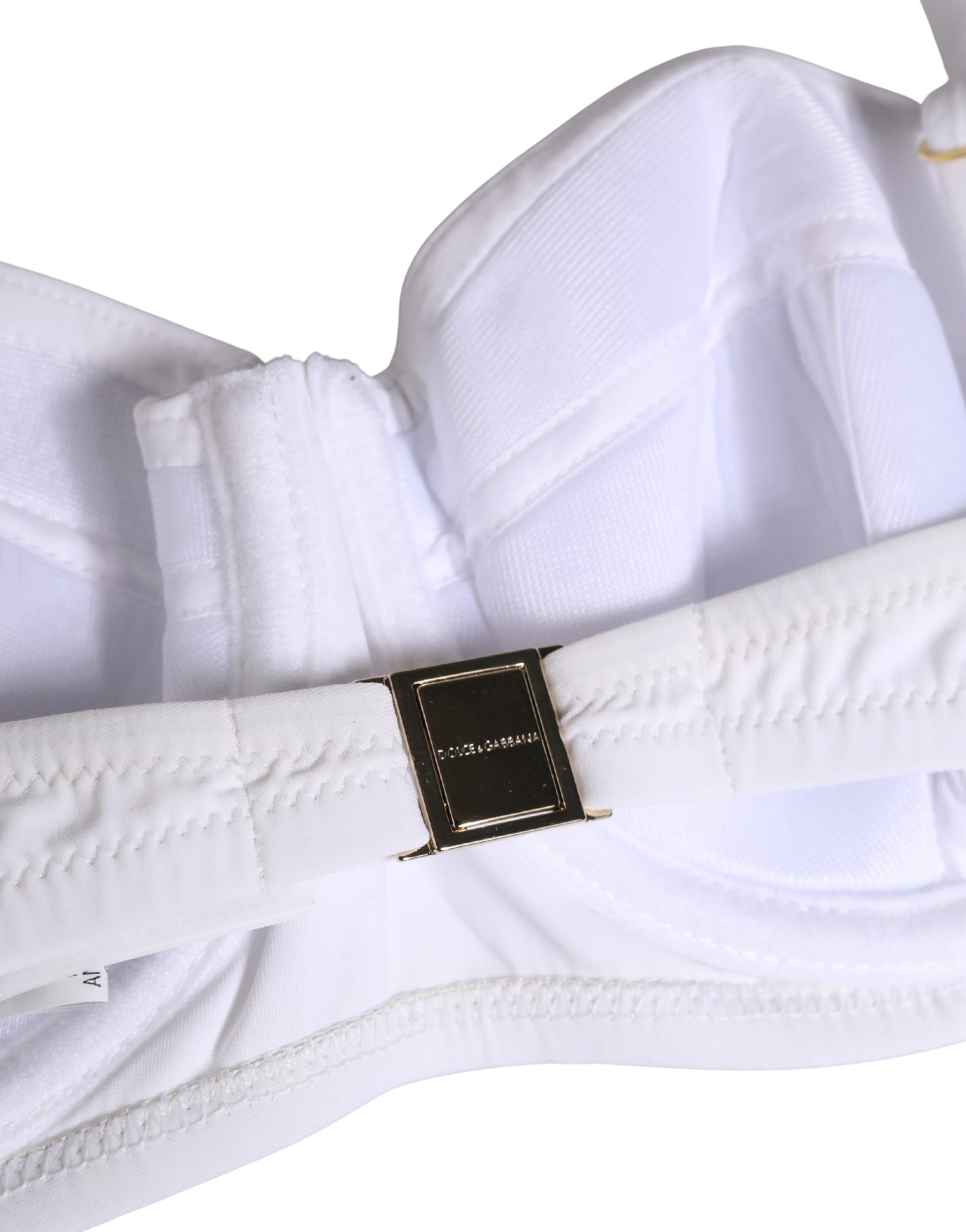 Dolce & Gabbana White Nylon Bikini Logo Plaque 2 Piece Swimwear