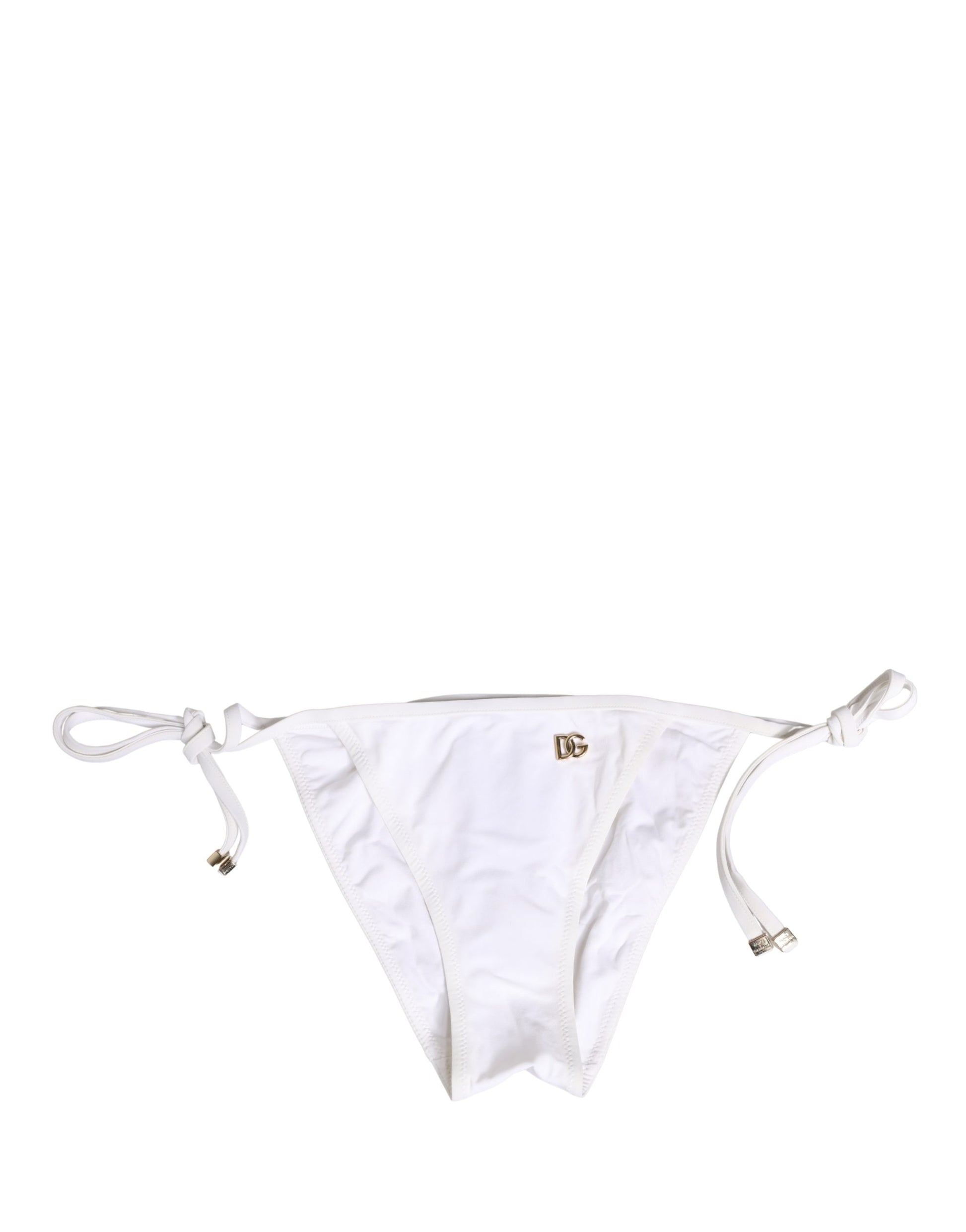 Dolce & Gabbana White Nylon DG Logo Plaque Bikini Bottom Swimwear