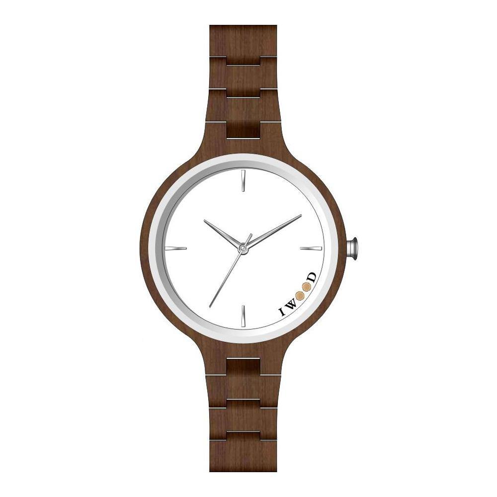 Iwood IW18442003 watch is specially designed for women with unique fashion character. The Iwood watch has a simple design with the natural finishing of real walnut wood. The white dial combined with the brown wooden band gives it a smart and relaxed look that goes perfectly with everyday wear.