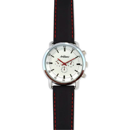 Stay on trend with this stylish yet affordable Men's Watch from Arabians. Featuring a sleek black silicone strap and modern white watch face encased in stainless steel, this fashionable timepiece will complement any outfit. The durable mineral crystal and quartz movement ensure accurate timekeeping while the stainless steel and silicone construction provide a comfortable fit and feel. At 44mm in diameter, this contemporary watch makes a bold statement on any wrist. For the fashion-forward man looking to accessorize in an instant, look no further than the Men's Watch from Arabians.