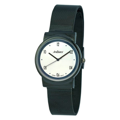 This fashionable yet affordable men's watch from Arabians is the perfect accessory for the stylish man on the go. Featuring a sleek black steel bracelet and 38mm stainless steel case, this quartz watch will complement both casual and professional attire. The minimal white watch face with black accents gives it a modern, clean look while the mineral crystal glass protects the face from scratches. Although not water resistant, this watch is ideal for everyday use and includes a black brand gift box for storage when not being worn. For a versatile, contemporary watch without breaking the bank, you can't go wrong with the Arabians Men's Watch.