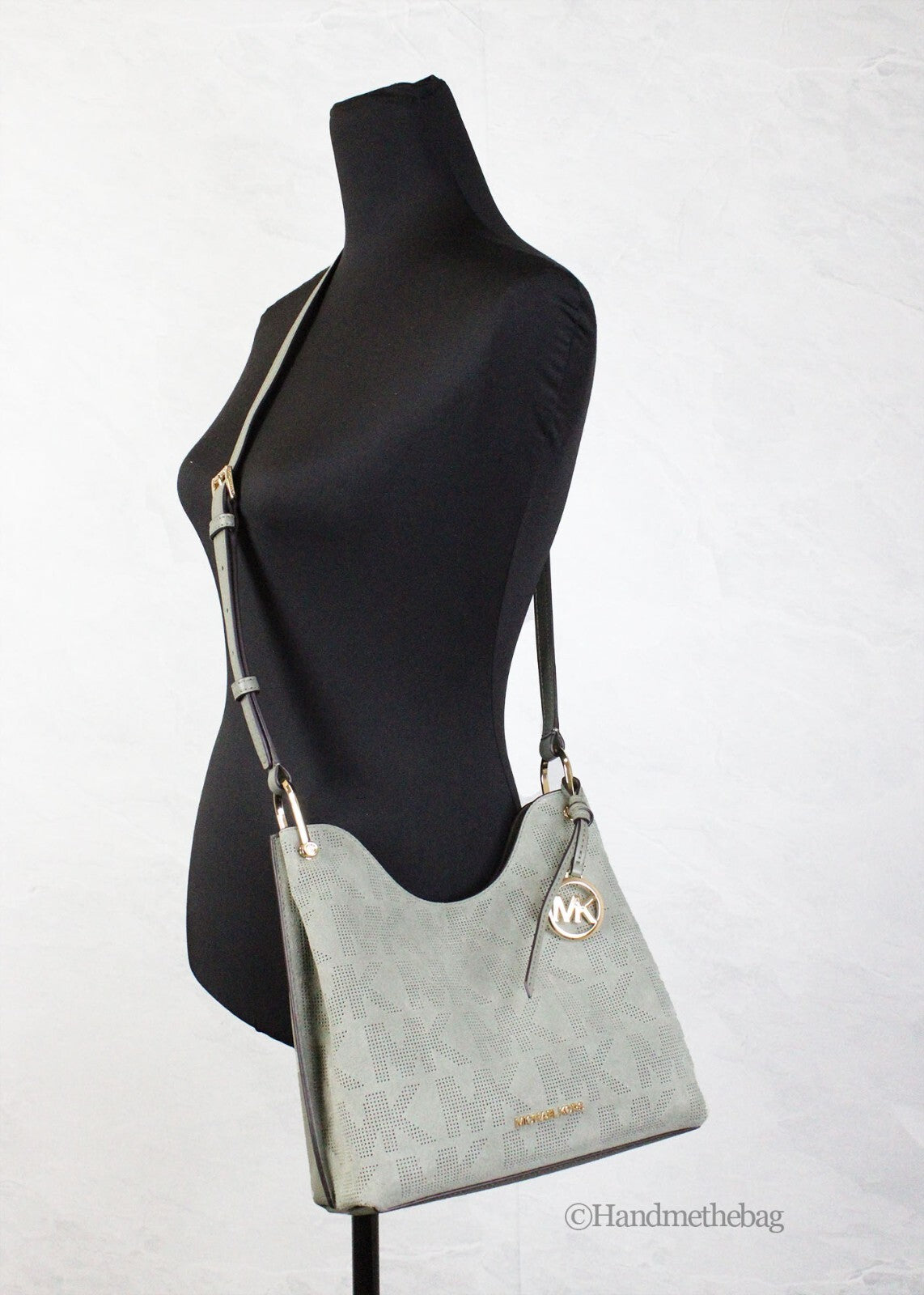 Michael Kors Joan Small Green Perforated Suede Leather Slouchy Messenger Handbag