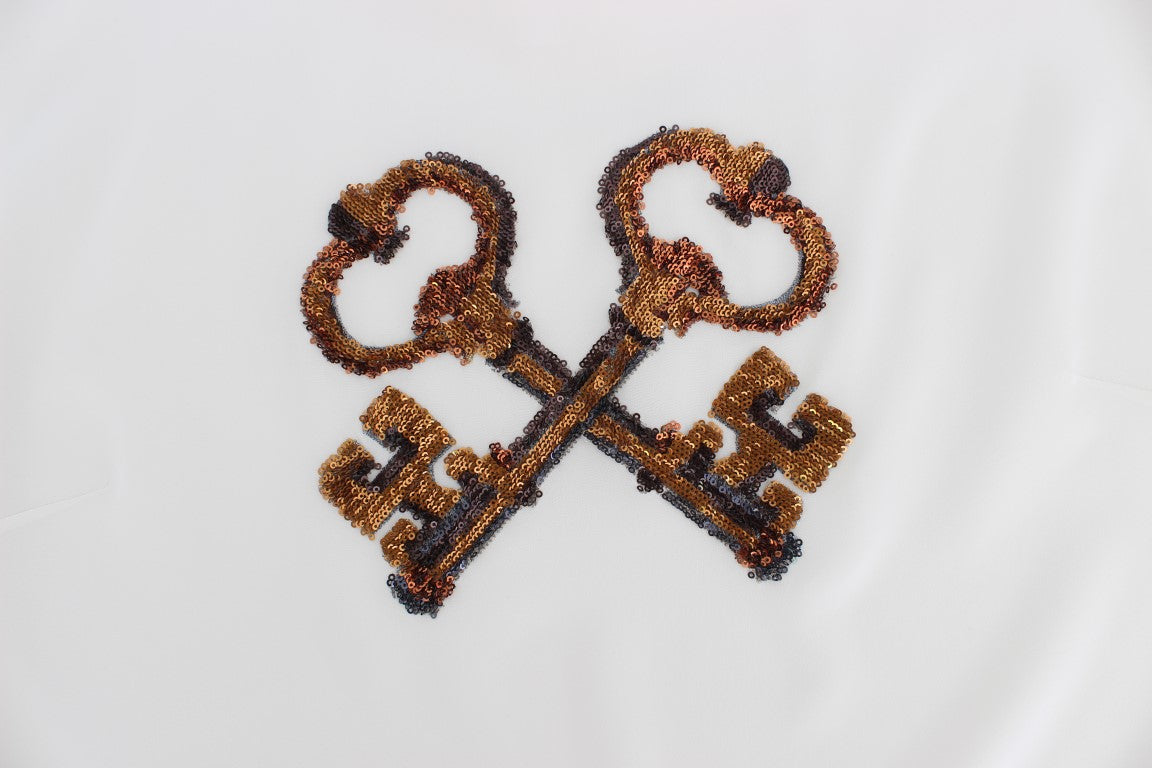 • Gorgeous brand new with tags, 100% Authentic DOLCE & GABBANA white silk sequined key blouse top. This item comes from the exclusive MainLine Dolce & Gabbana Collection.